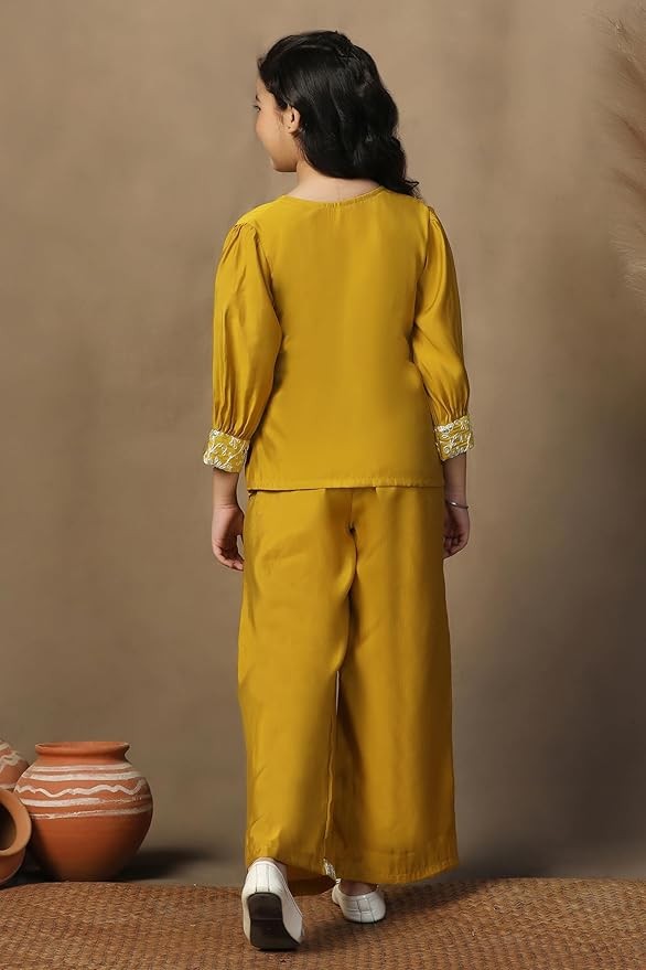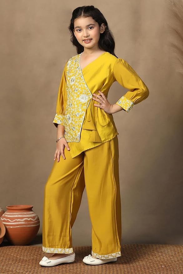 • Number of Items: Two-piece set including embroidered wrap-style kurta and solid palazzo — a complete kids kurta set girls look.