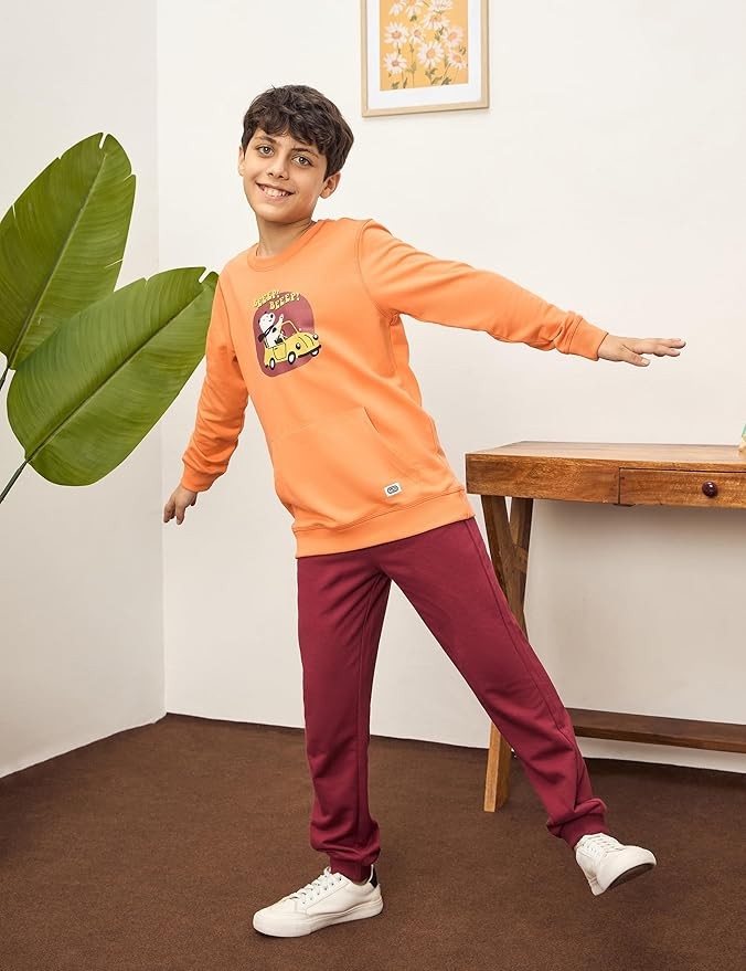 • Top: Round neck full Sleeves front closed sweatshirt with kangroo pocket